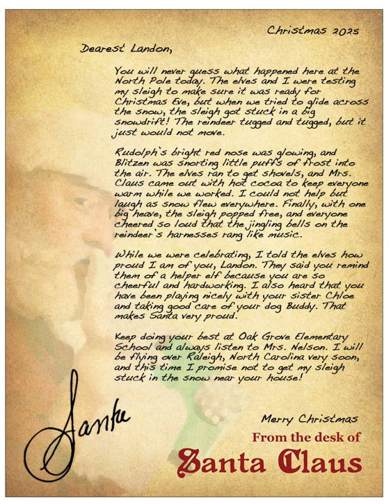 2025 Sleigh Got Stuck | Letter from Santa Click To Zoom